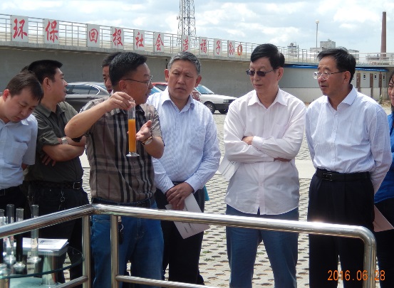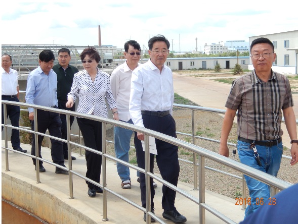 2016年06月28日上午,内蒙古自治区政协副主席、党组副书记陈羽、呼和浩特市政协副主席李宏一行在呼和浩特市环保局副局长金瑞山、托克托县县长郭志钢、副县长高巴图、托县环保局领导的陪同下,莅临乐动网页版参观考察,就金河环保的生产情况、生产工艺流程以及出水指标等方面进行了了解,乐动网页版总经理田中宏、副总经理楚新华全程陪同讲解。