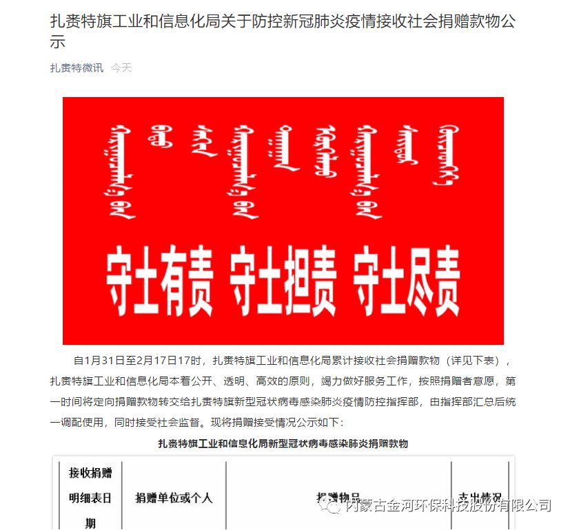 众志成城,并肩战疫。疫情爆发以来,金河环保公司主动承担社会责任,以实际行动助力疫情防控。